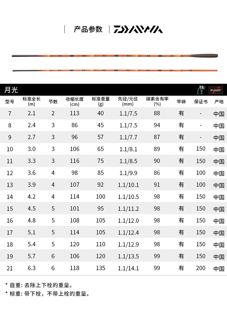 V-JOINT:具线条美感弧度能达到理想的状态及发挥更高威力。在竿节的部位使用DAIWA自身的BIAS构造。实现结合部的理想弧度,同时提高力量/传导/感度性能。 V-JOINTα:使用含nano+的高强度材质及DAIWA自身高精准度钓竿设计制造技术, 使V-JOINT更加强韧、轻盈、美观。