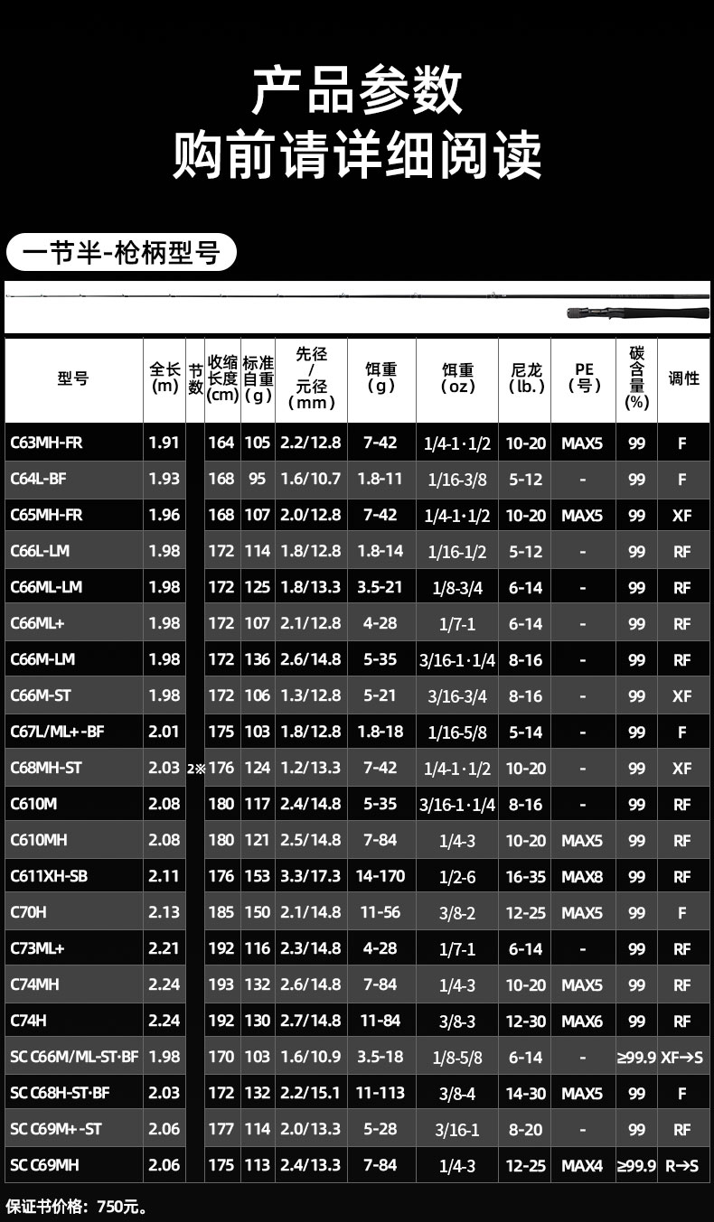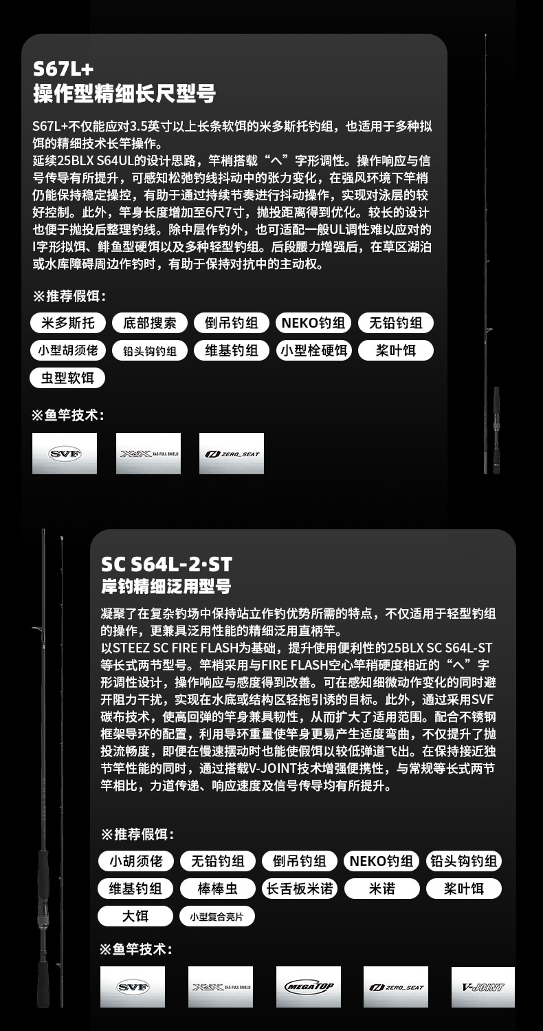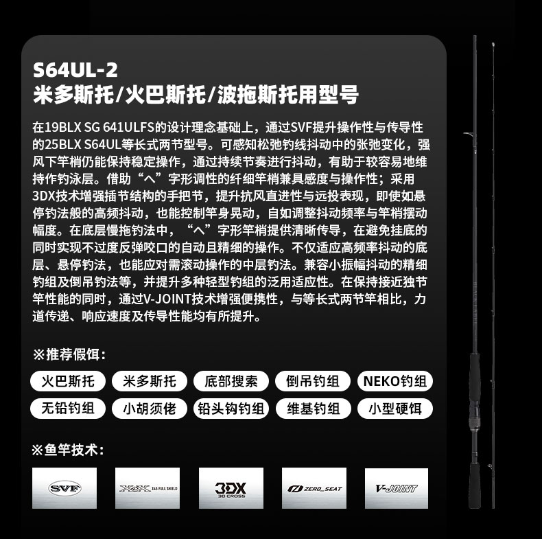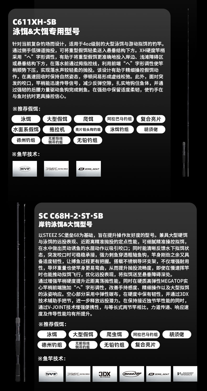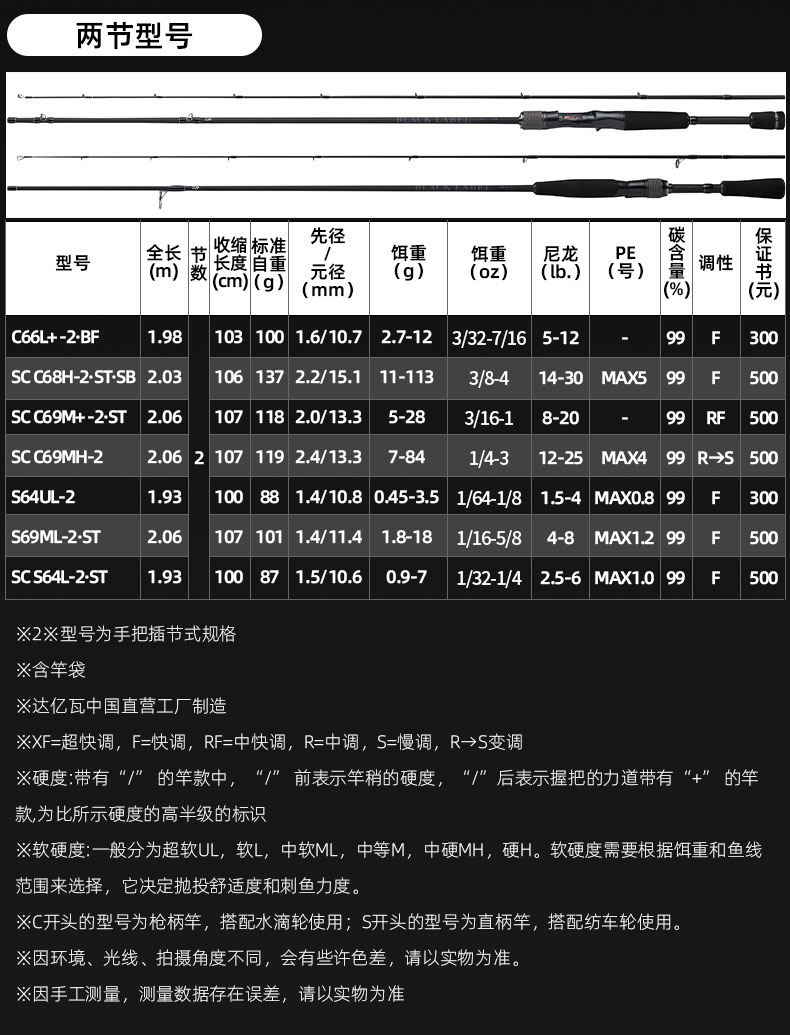 V-JOINT:具线条美感弧度能达到理想的状态及发挥更高威力。在竿节的部位使用DAIWA自身的BIAS构造。实现结合部的理想弧度,同时提高力量/传导/感度性能。 V-JOINTα:使用含nano+的高强度材质及DAIWA自身高精准度钓竿设计制造技术, 使V-JOINT更加强韧、轻盈、美观。