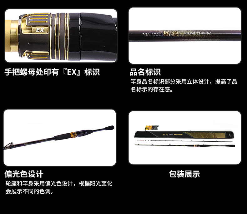 V-JOINT:具线条美感弧度能达到理想的状态及发挥更高威力。在竿节的部位使用DAIWA自身的BIAS构造。实现结合部的理想弧度,同时提高力量/传导/感度性能。 V-JOINTα:使用含nano+的高强度材质及DAIWA自身高精准度钓竿设计制造技术, 使V-JOINT更加强韧、轻盈、美观。