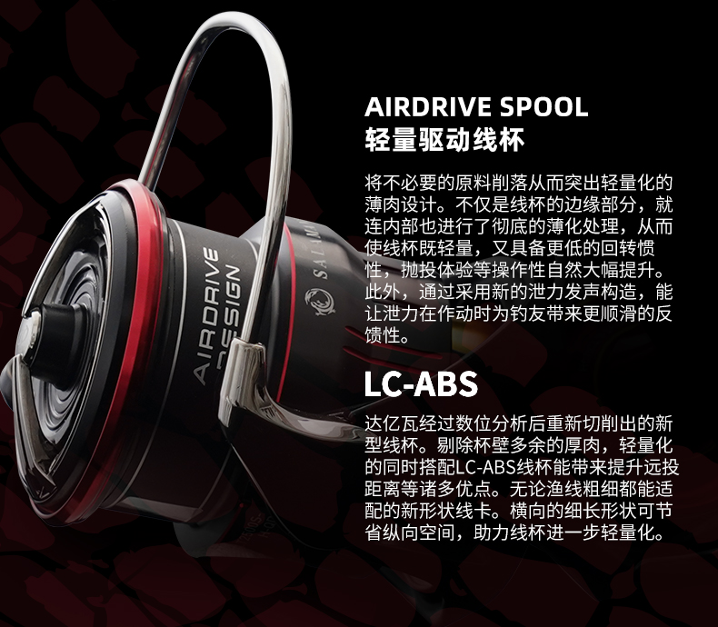 伴随线杯自身轻量化的实现以及设计师对线杯边缘处形状的进一步完善,LC-ABS线杯能使抛竿距离有了提升。请务必亲身体验。