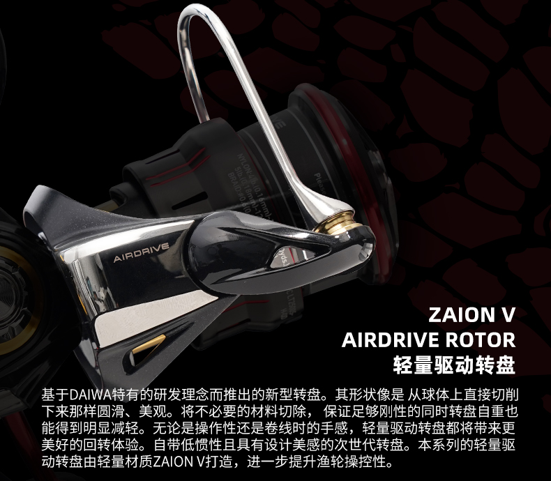 基于DAIWA的研发理念而推出的新型转盘。其形状像是从球体上直接切削下来那样圆滑、美观。将不必要的材料切除,保证足够刚性的同时转盘自重也能得到明显减轻。无论是操作性还是卷线时的手感,轻量驱动转盘都将带来更美好的回转体验。