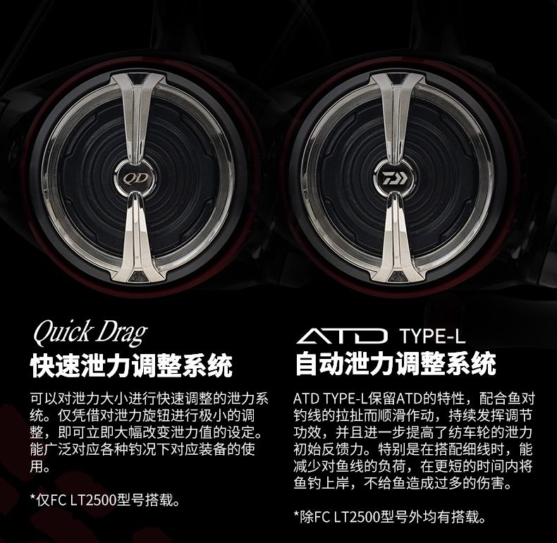 ATDTYPE-L保留了ATD的特性,配合鱼对钓线的拉扯而顺滑作动持续发挥调节功效,并且进一步提高了纺车轮的泄力初始反馈力。特别是在搭配细线时,能减少对鱼线的负荷,在更短的时间内将鱼钓上岸,不给鱼造成过多的伤害。