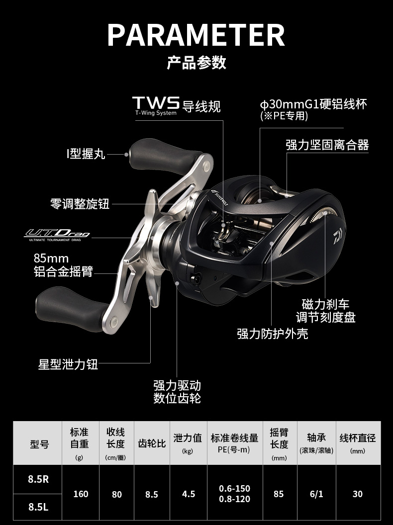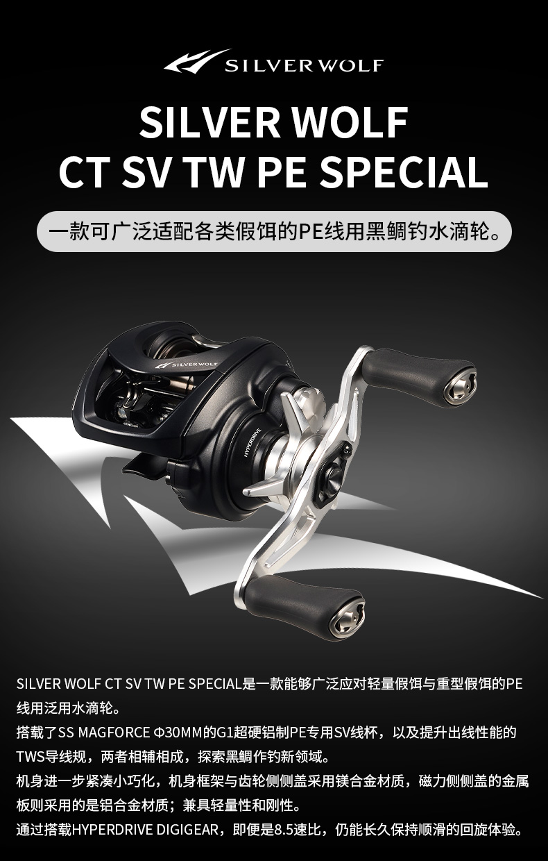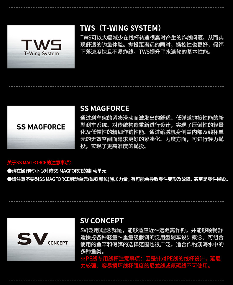 TWS可以大幅减少在线杯转速很高时产生的炸线问题,从而实现舒适的钓鱼体验。抛投距离远的同时,操控性也更好,假饵下落速度快且不易炸线。TWS提升了水滴轮的基本性能。