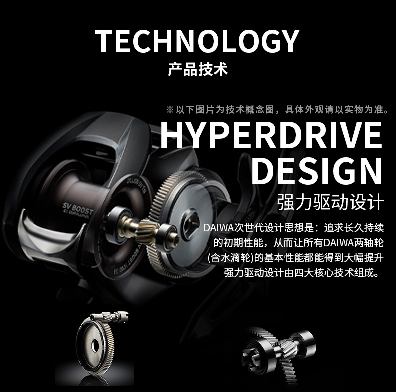 水滴轮所需功能的集成,更强韧、更平滑、更持久的回旋。动力单元从传动齿轮不断向 小号齿轮输送能量,外壳能够从外部可靠地支撑驱动部,实现稳定而又安静的驱动力, 多功能各机横在各类情况下都能发挥作用。两轴卷线器的设计思想实现了无浪费、高 效率,实现了比以往系列产品的更强驱动体验。