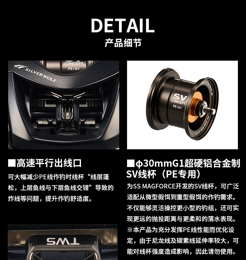 线杯仅靠两端的轴承来支撑,由于没有线杯轴,所以线杯在回转中的摩擦力近乎为零,从而得到理想的回转效果。它正是一台以抛投性能为考量的装备中那关键的一环。