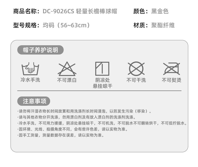 DC-9026CS 轻量长檐棒球帽