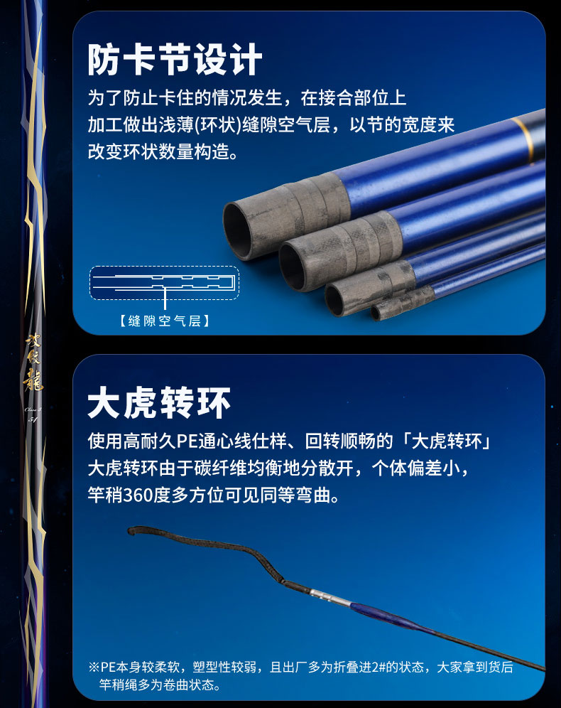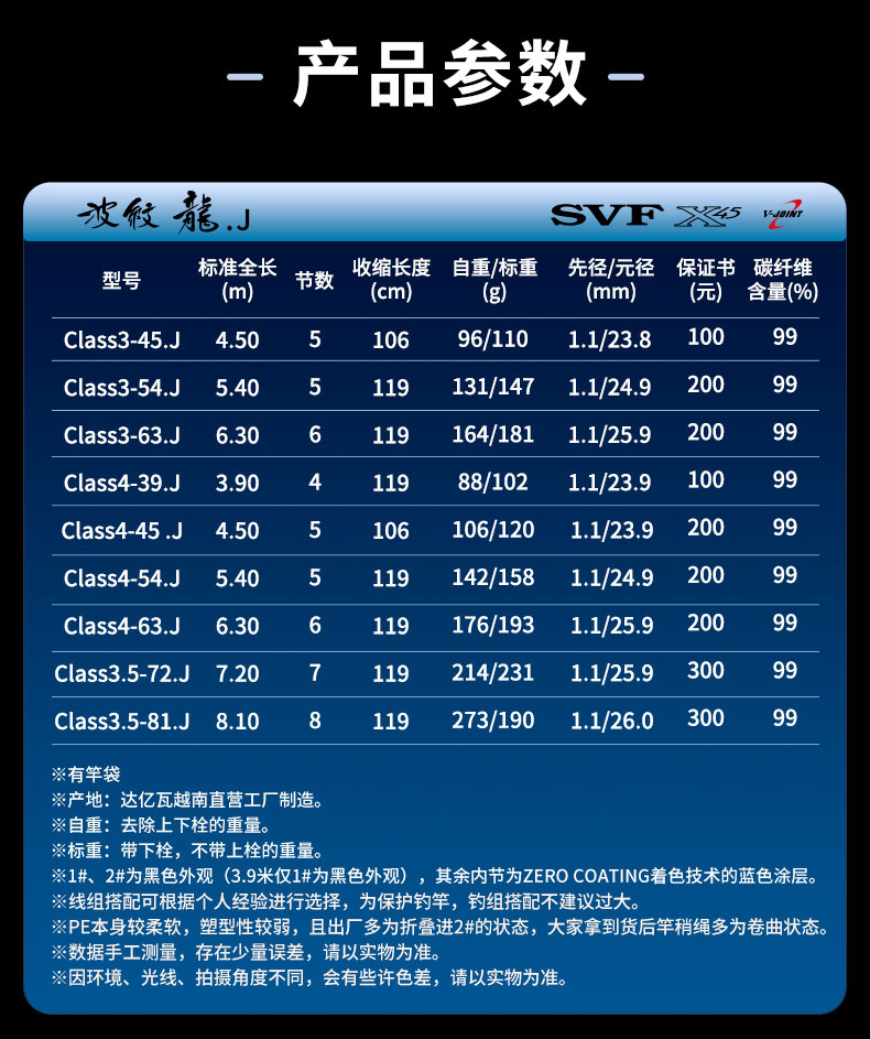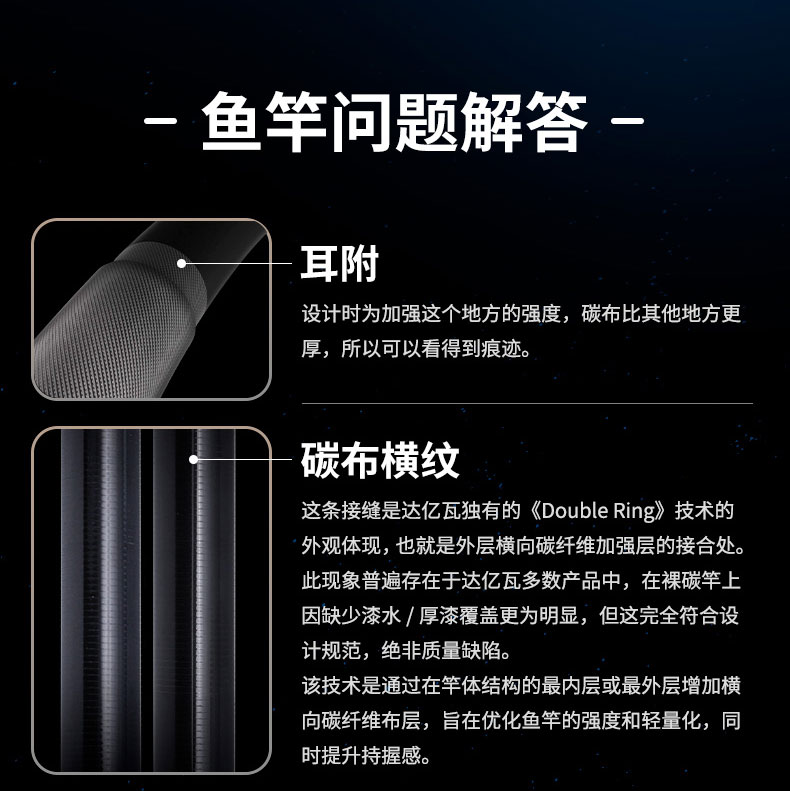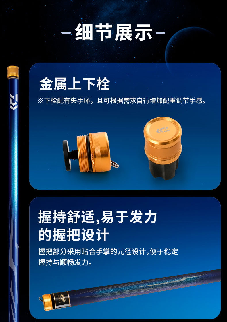 V-JOINT:具线条美感弧度能达到理想的状态及发挥更高威力。在竿节的部位使用DAIWA自身的BIAS构造。实现结合部的理想弧度,同时提高力量/传导/感度性能。 V-JOINTα:使用含nano+的高强度材质及DAIWA自身高精准度钓竿设计制造技术, 使V-JOINT更加强韧、轻盈、美观。